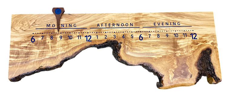 Every month we go hunting for remarkable specimens of fine lumber. When we find one, we respect what nature has done with these beautiful boards. We just buff them, miter them, and make them into Linear Clocks.