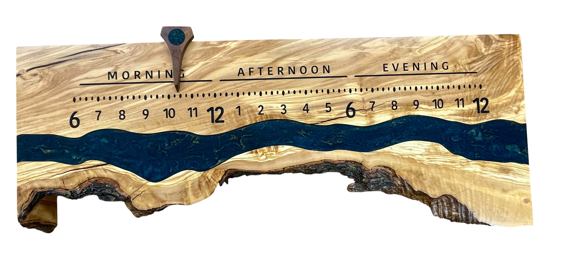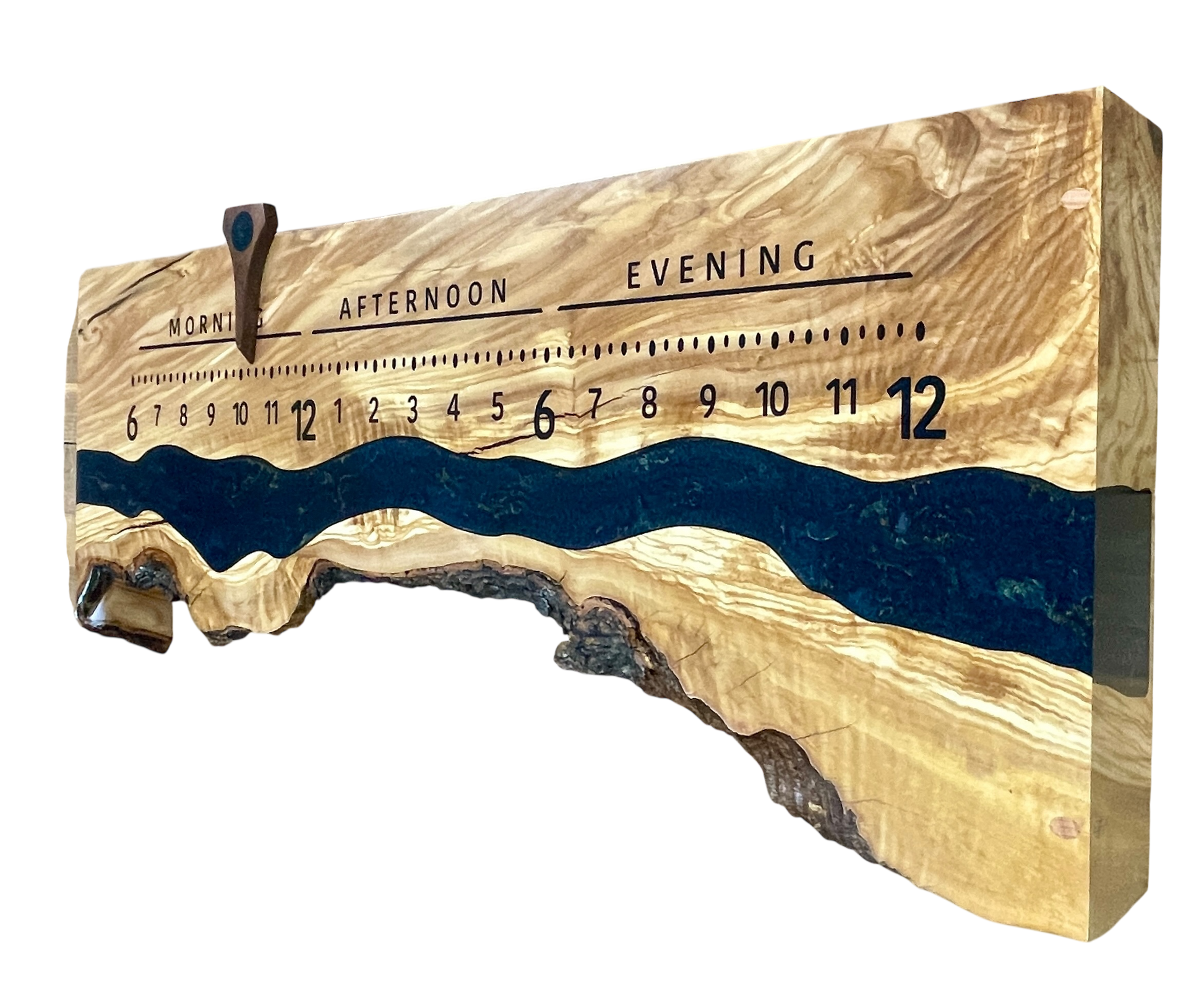 The resin river is just the cherry on top of this delicious piece of work! The contrasting walnut pointer has a matching resin circle.