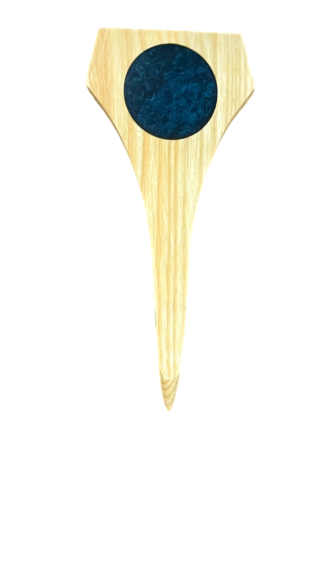 The lettering is cream, colored resin and matches the maple pointer well. We added a swirled blue resin circle on the pointer for decoration.