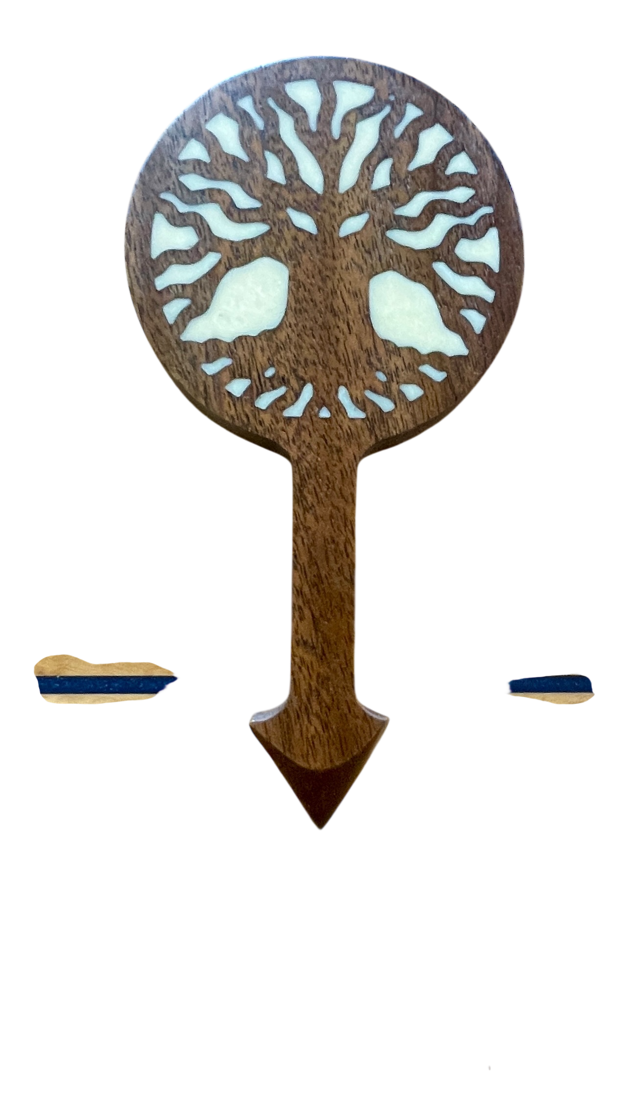 Chiara is a lovely length of Olivewood, with the fabulous grain patterning we've come to expect in a tree that grows for a thousand years. We made a dark walnut tree-of-life pointer: suitable for a tree that means life itself, in old cultures.