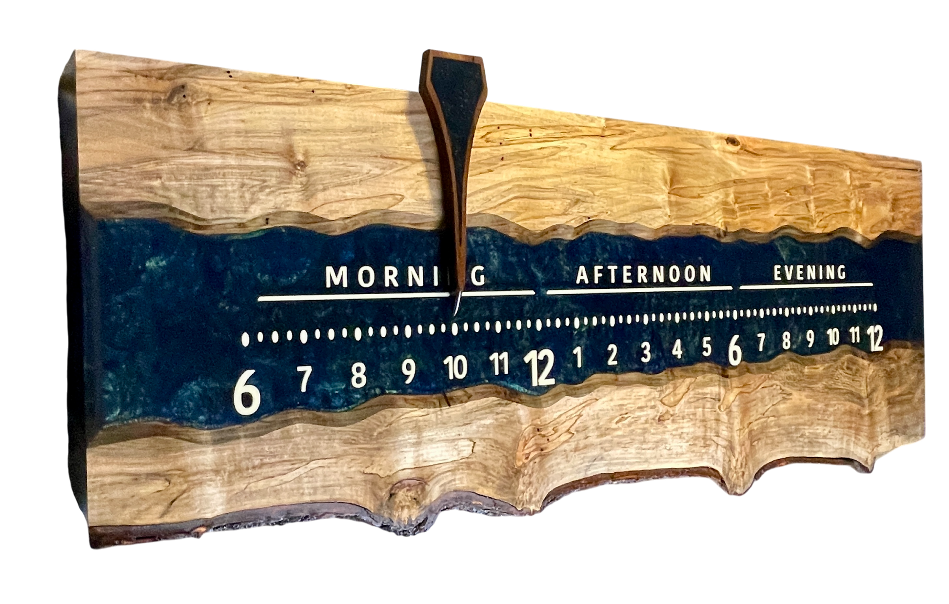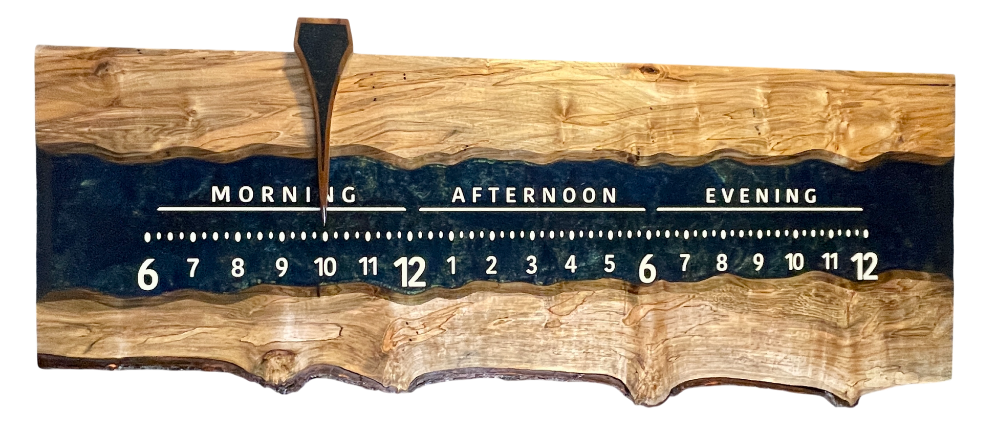 At 40 inches wide and 15 inches tall, this timepiece merges the untamed character of the forest with the precision of measured time.